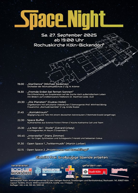 Man kann sich im Makro-Kosmos verirren; genauso besteht aber die Gefahr, sich im Mikro-Kosmos der Bausteine des Lebens zu verlieren. Intention der SpaceNight ist daher ein Spannungsbogen „Kontaktaufnahme – Grenzgänge“.